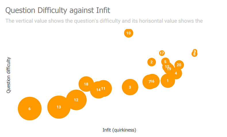 In other words, it’s almost miraculous. We’ve found these measures in our NoMoreMarking data (which also uses Rasch) so helpful, that we’ve developed a multiple choice analysis spreadsheet to analyse and present data in a comparable way.