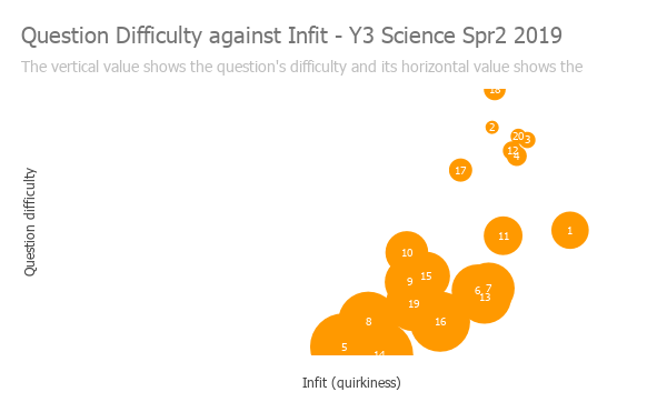 Question Difficulty against Infit – Y3 Science Spr2 2019 16/05/2019 Return to: Using the Rasch Model to Analyse Multiple Choice QuestionsFull resolution (600 × 371) Image navigation Previous Image Next Image