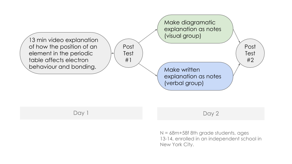 Creating Visual Explanations Improves Learning Eliza Bobek & Barbara Tversky (1) 01/10/2019 Return to: Using Visual Explanations Leads to Better PerformanceFull resolution (960 × 540) Image navigation Previous Image Next Image Post Test #1 and Post Test #2 score for the verbal group (written explanation) and the visual group (diagramatic explanation)