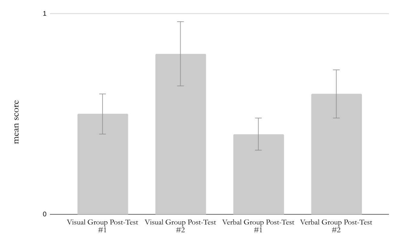 Screenshot 2019-10-01 at 19.19.20 01/10/2019 Return to: Using Visual Explanations Leads to Better PerformanceFull resolution (1320 × 800) Image navigation Previous Image Next Image Post Test #1 and Post Test #2 score for the verbal group (written explanation) and the visual group (diagramatic explanation)