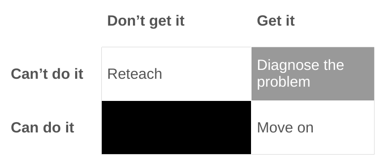 When you check whether pupils in your class can do something they either can or they can’t. Then you decide how to respond. It’s black and white. What about the grey?