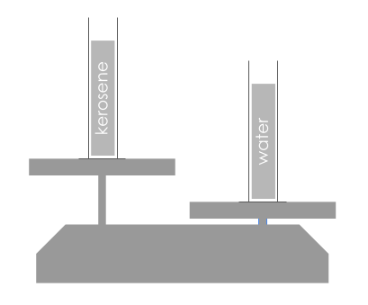 Then I took two measuring cylinders and a balance. In one I poured kerosene and the other water. “Which one is heavier?”