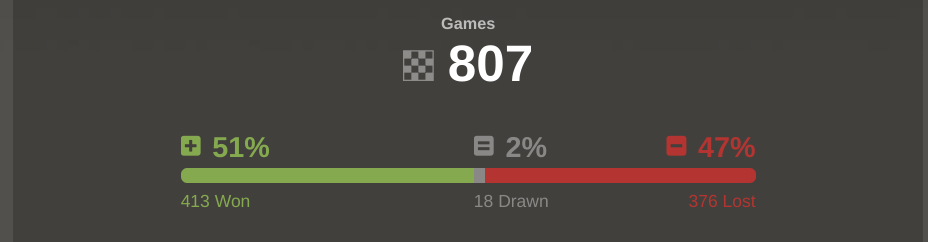 Another thing I’ve noticed from my stats is that I get winning streaks and losing streaks. When I’m on a losing streak (Nov/Dec this year I dropped a massive 100 points in my rating), I still think I’m as good as when I’m on a winning streak. I can’t tell before I play how good I’ll be. I don’t have an effective sense of how clearly I’m thinking. Perhaps I shouldn’t make important decisions without playing a couple of games first to check my brain is working well.