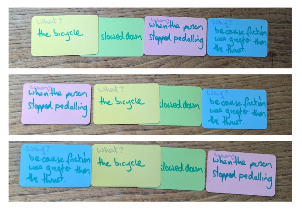 Then I add the other cards, showing the options. Read each arrangement aloud, showing that each version is possible.