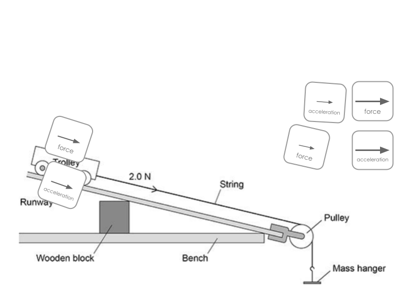 Students using force and acceleration tokens to make comprehension visible.