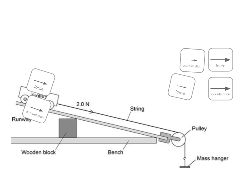 Students using force and acceleration tokens to make comprehension visible.